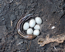 Five-lined Skink (Plestiodon fasciatus) with eggs found under a coverboard at Barataria Preserve. Females will stay with their eggs until they hatch and then the babies are left to fend for themselves.