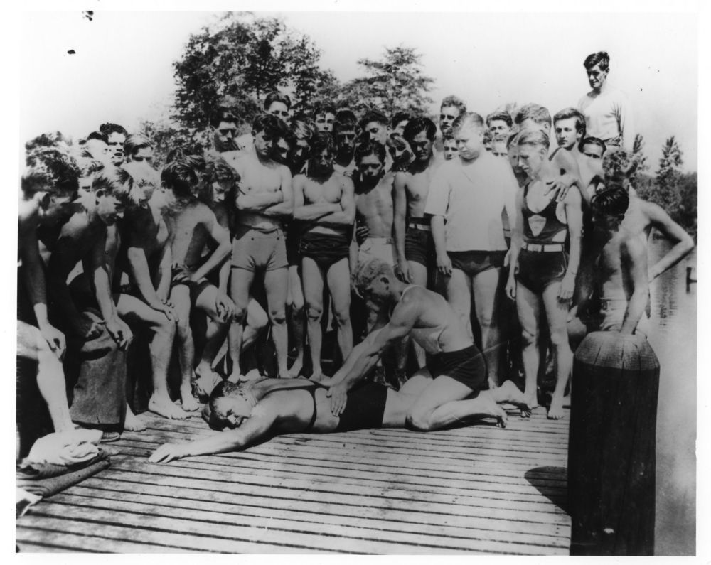 Construction of Virginia Kendall Lake & Dam, Civilian Conservation Corps ca. 1936. See scan of writing on the back of each image for additional details. || Many of the historic structures in the Virginia Kendall unit of Cuyahoga Valley National Park were built by Civilian Conservation Corps workers during the 1930s.