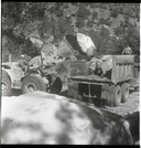 BW photo of rock slide near Echo Rock - 2.5" x 2.5". ; ZION Museum and Archives Image 107_06_06052 ; ZION 15933