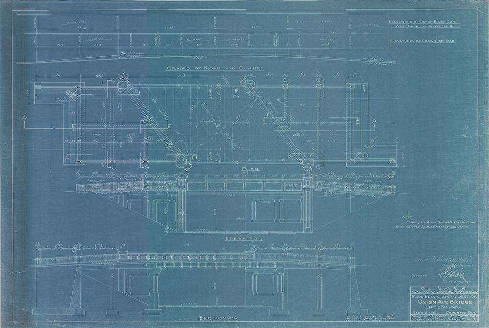 Union Avenue Bridge--Plan, elevation and section--Little Falls, NJ [1922.11] Sheet no. 1 of 5