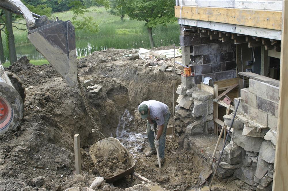 Maintenance employees work on the foundation of the Martin House, one project in CVNP's Historic Structures Rehabilitation Program. || From 2006-2007 the Martin House was rehabilitated as part of CVNP's Historic Structures Program. This property will likely be leased as a Countryside Initiative farm. CVNP enters into agreements with sustainable farmers in order to preserve the rural heritage of the Cuyahoga Valley.