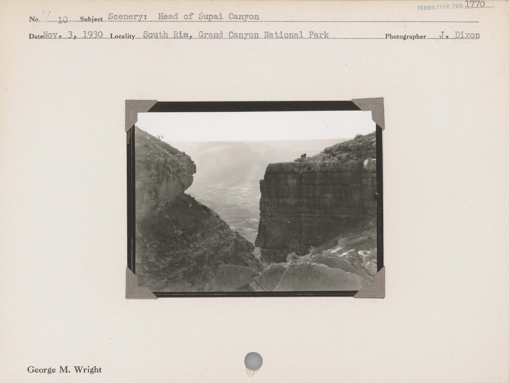 Scenery: Head of Supai Canyon. Negative #: 1770. Locality: South Rim, Grand Canyon National Park.