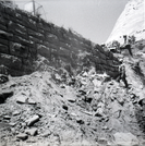 Brick retaining wall along East Rim road during repairs. ; ZION Museum and Archives Image 002.05.01-13of19 ; ZION 15933