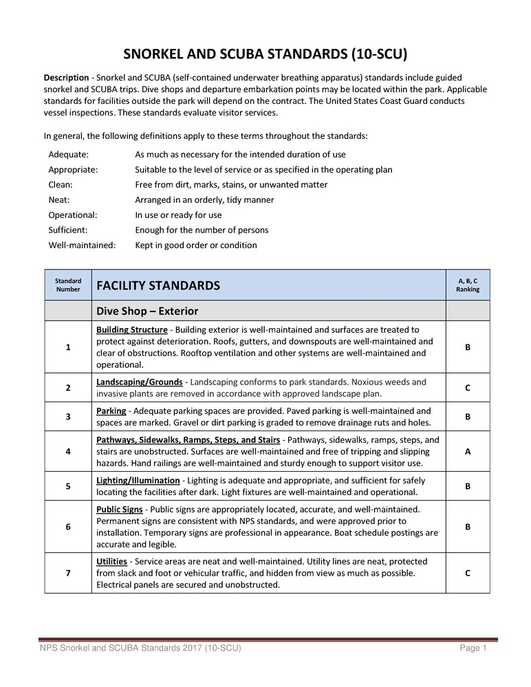 Snorkel and Scuba Standards (10-SCU)