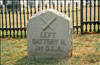 Marker flanking monument