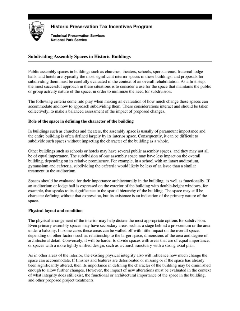 Subdividing public assembly spaces consistent with the Standards for Rehabilitation