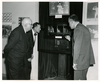 Vice Admiral Harold Bowen, of Edison Foundation, Verner W. Clapp, acting librarian of congress, and A.J. Wedderbrun, Smithsonian institution, looking at mutoscope on exhibit.