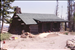Cabin with cut logs stacked beside it.