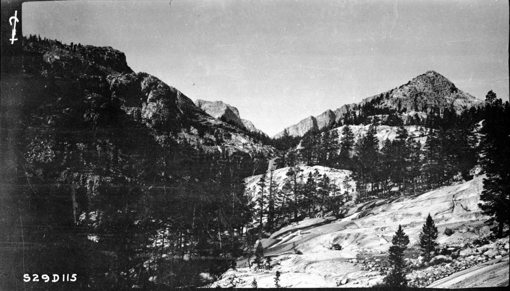 Trail routes, where Milestone Creek joins the Kern River, looking west. Lodgepole Pine Forest Plant Community