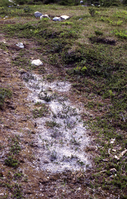 Cascade Pass, Revegetation Site TH14, revegetation monitoring photograph. Text on slide frame reads: "REV/CAS/TH14/d-5, Phyemp planting near Thx14 planted, Upper Pelton Basin, 9-6-02." (North Cascades NPS Complex Museum Collection, NOCA.0013 Revegetation Program Records, Series XI: Photographs, File 001 - Cascade Pass Vicinity Impacts and Revegetation Sites, 1970-2004)