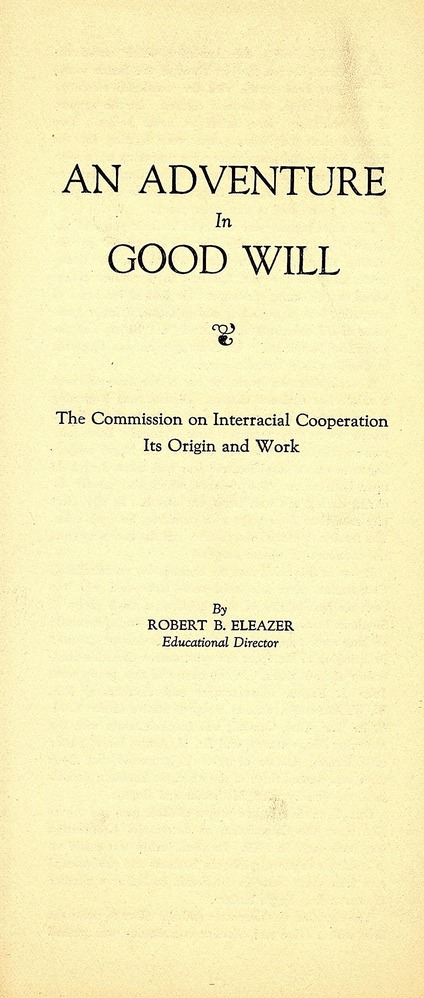 An Adventure in Good Will: The Commission in Interracial Cooperation: Its Origin and Work