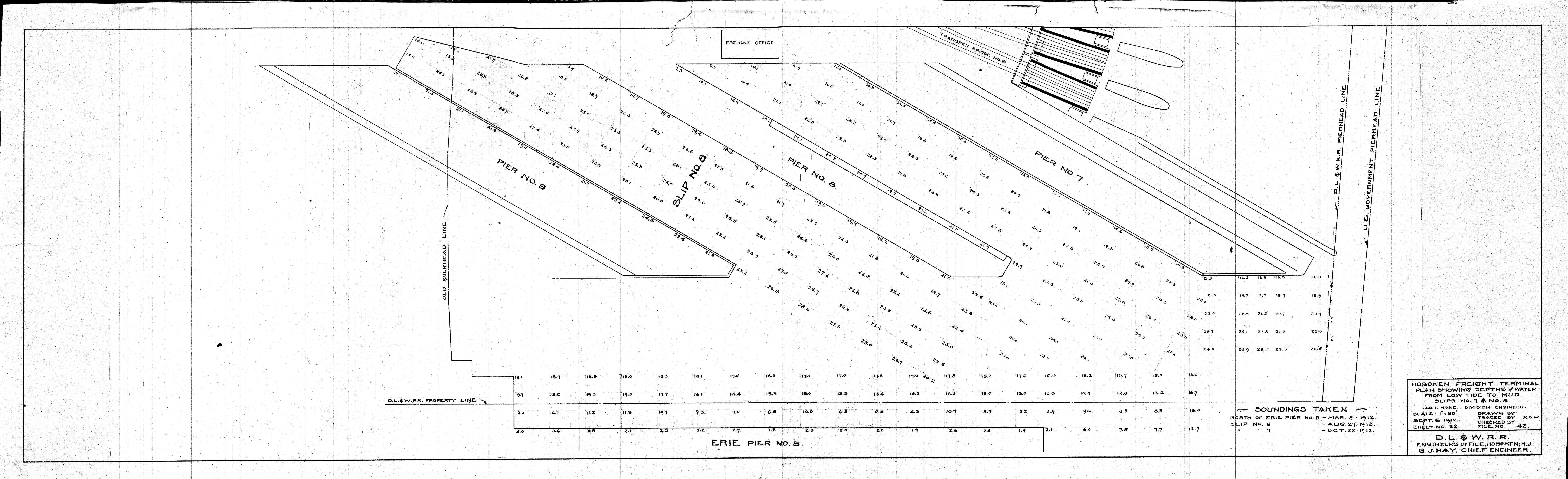 00042.BH--Hoboken Freight Terminal--Plan showing depths of water from low tide to mud--Hoboken, NJ