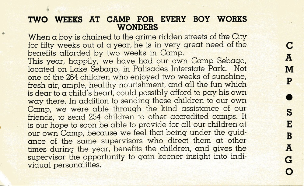 Booklet from Boys' Athletic League titled, "Boys' Athletic League Inc./ Annual Report". Booklet contains overview of organization, of activities, of "Christmas joys", of Washington Street Center, of Camp Sebago, of 657 Tenth Avenue, of W 113 Street Center, and of the president's message. Includes photographs of activities as well as list of officers and board of governors. See following entries for other pages: "Booklet, Boys' Athletic League, 1936 p.1.tif" to "Booklet, Boys' Athletic League, 1936 p.18.tif" and "Statement, Boys' Athletic League, August 31, 1936.tif"