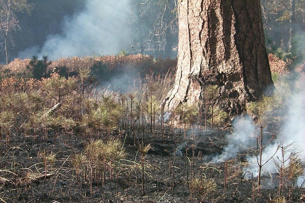Fire in progress at El Capitan prescribed burn, 2000, Yosemite National Park