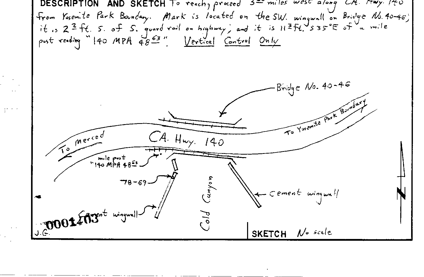 Survey monument record sheet, Sketch number: 00001403