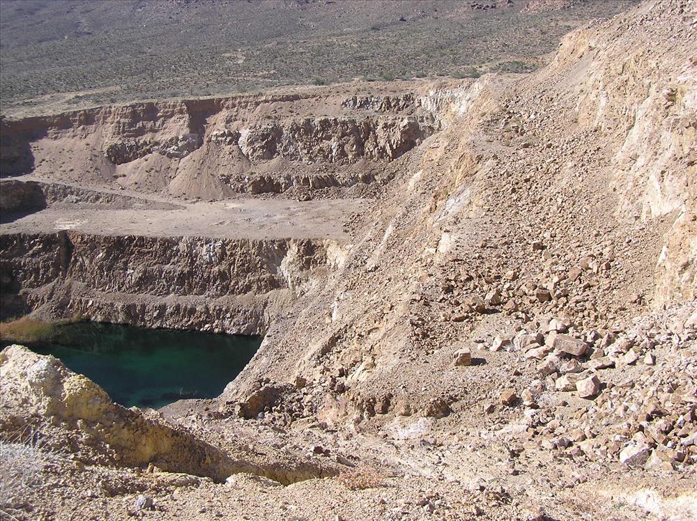 Morning Star Mine, an abandoned open pit gold mine with large waste rock piles.