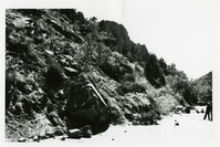 BW Photo of rock slide near echo rock - 35MM. ; ZION Museum and Archives Image 107_06_05013 ; ZION 15933