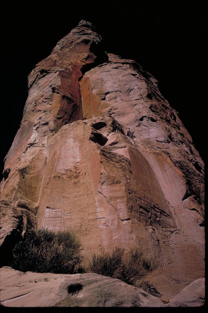 Rising 200 feet above the valley floor, this massive sandstone bluff was a welcome landmark for weary travelers. A reliable waterhole hidden at its base made El Morro (or Inscription Rock) a popular campsite. Beginning in the late 1500s Spanish, and later, Americans passed by El Morro. While they rested in its shade and drank from the pool, many carved their signatures, dates, and messages. Before the Spanish, petroglyphs were inscribed by Ancestral Puebloans living on top of the bluff over 700 years ago. Today, El Morro National Monument protects over 2,000 inscriptions and petroglyphs, as well as Ancestral Puebloan ruins. Proclaimed Dec. 8, 1906.