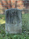 Front of historic upright marble headstone with recessed shield face.