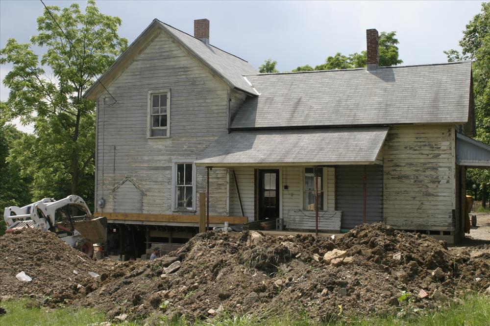 Maintenance employees work on the foundation of the Martin House, one project in CVNP's Historic Structures Rehabilitation Program. || From 2006-2007 the Martin House was rehabilitated as part of CVNP's Historic Structures Program. This property will likely be leased as a Countryside Initiative farm. CVNP enters into agreements with sustainable farmers in order to preserve the rural heritage of the Cuyahoga Valley.
