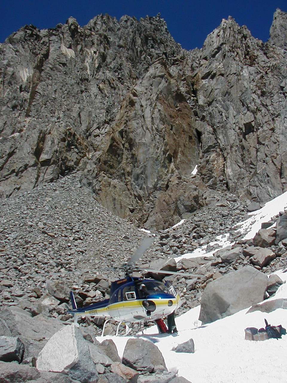 Park helicopter is involved in numerous high-altitude Search and Rescue (SAR) operations every year in the backcountry of Sequoia and Kings Canyon National Parks. This is a selection of images of the Starlight SAR 2004, above 12,000-ft. elevation in the Palisades region of Kings Canyon backcountry, showing various aspects of the rescue and of the terrain.