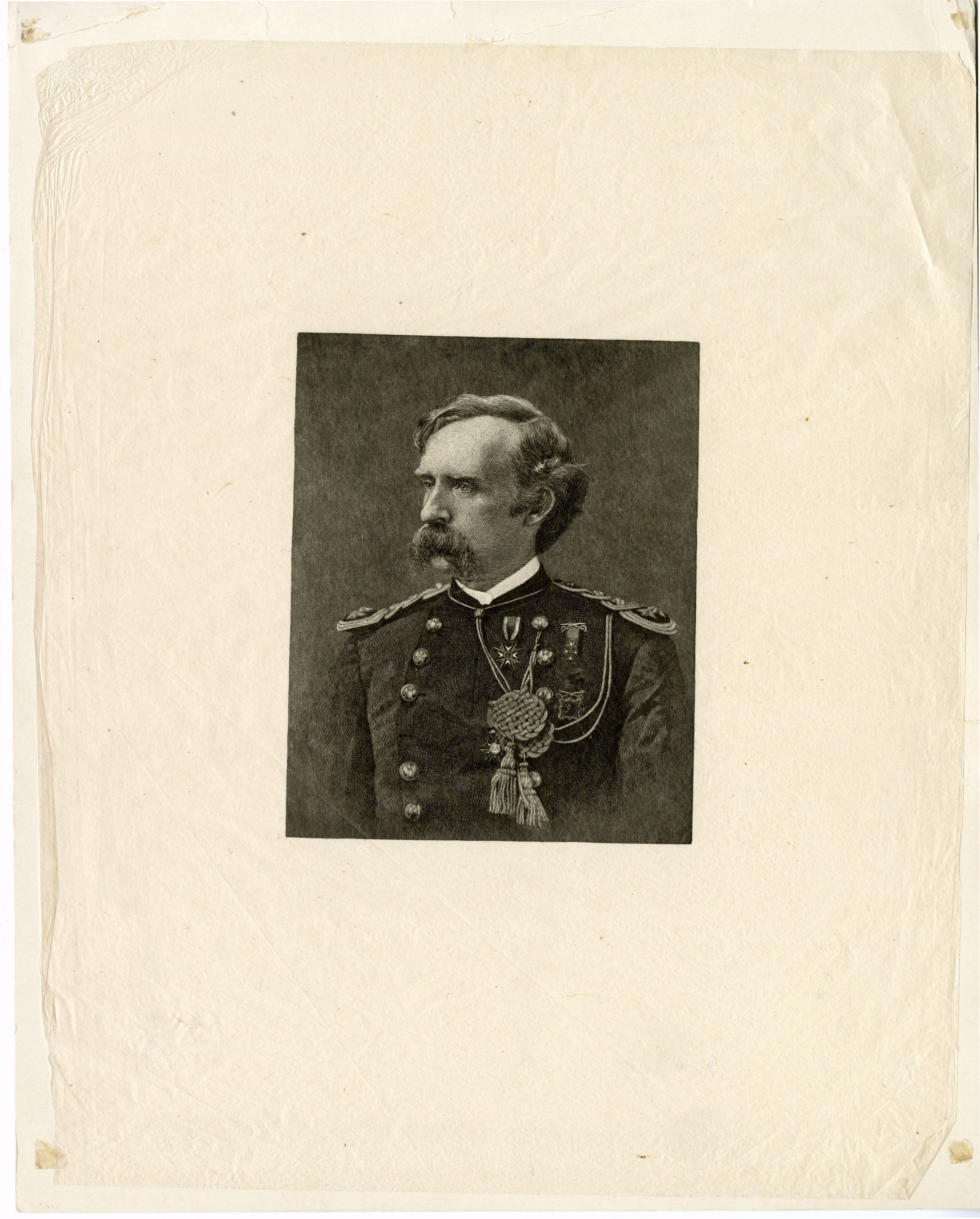 LIBI_00019_00305; A black-and-white engraving (print) of Major General George A. Custer; from Howell photograph; by unknown printer; dated circa 1865. Marked copy 1. See: C-303, C-304, copy 2 now catalogued as C-884.; Engraving [Intaglio print]; Courtesy of the National Park Service, Little Bighorn Battlefield National Monument, LIBI_00019_00305, William R. Howell, "Major General George Armstrong Custer in Dress Uniform Looking Left," circa 1865