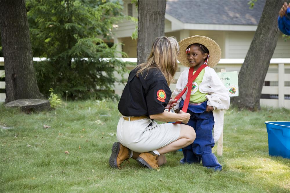 Cuyahoga Valley National Park (CVNP) and Cuyahoga Valley National Park Association present Get Up, Get Out & Go!, a campaign introducing recreational opportunities along the Ohio & Erie Canal Towpath Trail in Akron and the national park. The program targets residents in the urban neighborhoods surrounding the Towpath Trail in Akron which is a part of the larger Ohio & Erie Canalway, a national heritage area. Get Up, Get Out & Go! serves as an invitation for kids 11 to 14 years old and their families to give the Towpath Trail a try and to venture further along the trail into CVNP. || Youth do a historic costumes relay at the Get Up, Get Out, Go! kickoff event in June 2007.