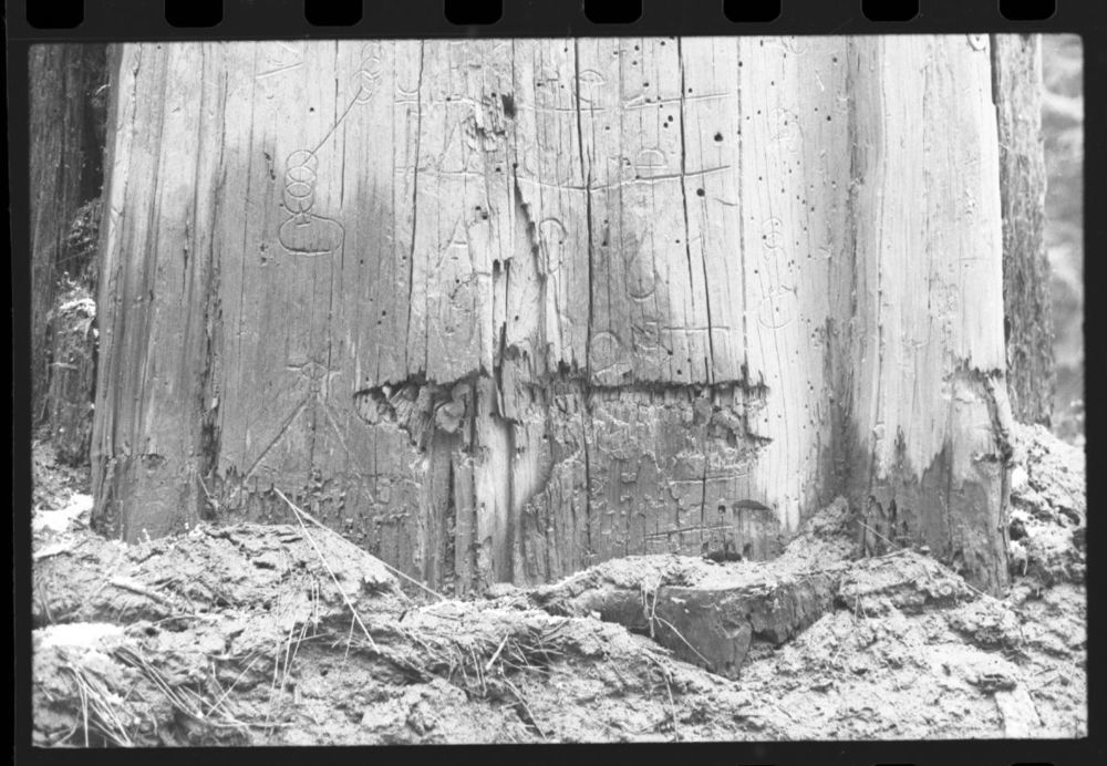 Bill Tweed, Mineral King Road, SNP, Aborglyphs. Witness Tree. Near Camp Conifer. 770516.