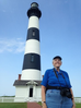 The Bodie Island Lighthouse is enjoyed by a longtime visitor to Cape Hatteras National Seashore.