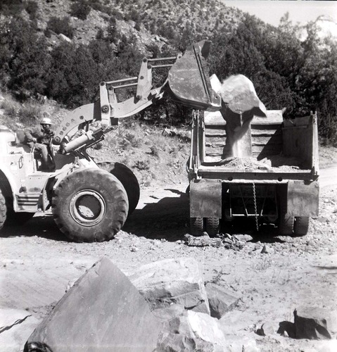BW photo of rock slide near Echo Rock - 2.5" x 2.5". ; ZION Museum and Archives Image 107_06_06056 ; ZION 15933