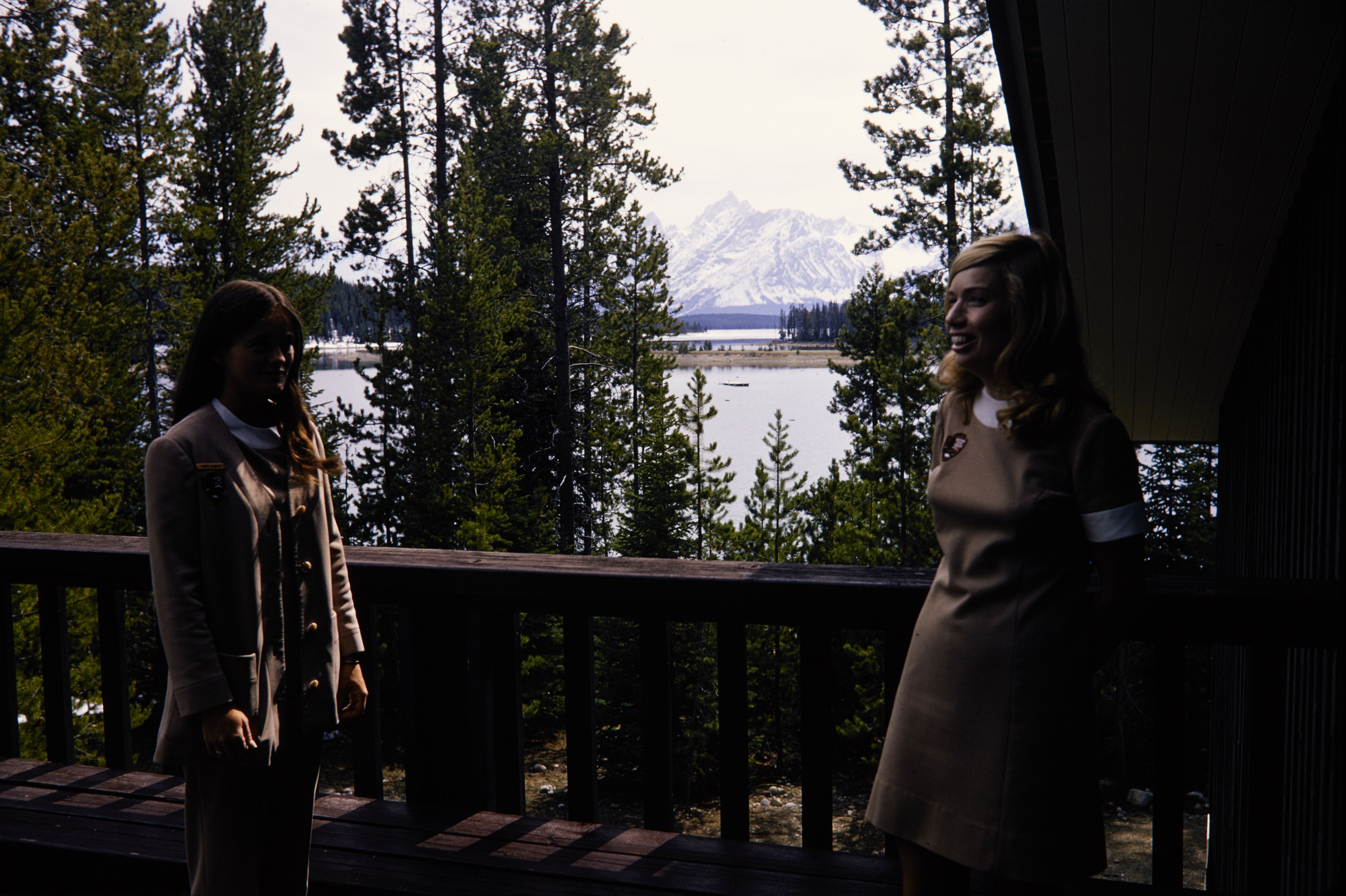 NPS employees standing in front of snow covered mountains in Grand Teton National Park.