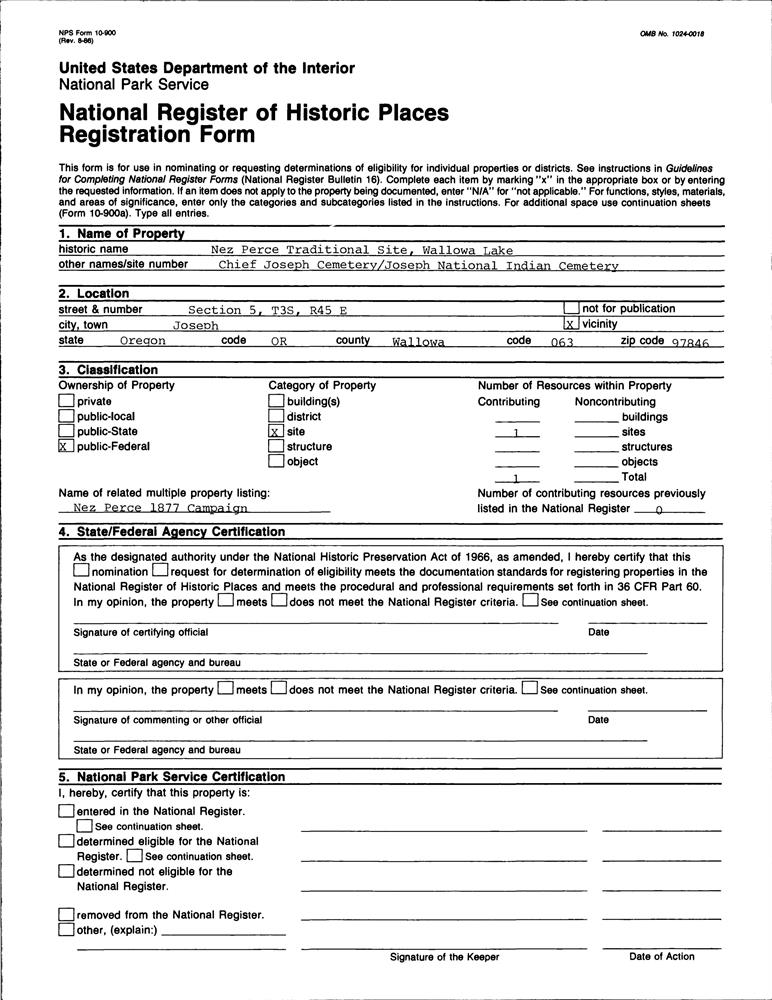 Nez Perce Traditional Site, Wallowa Lake