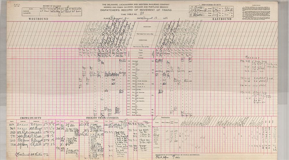 Dispatcher Sheets--Bangor & Portland Branch--Delaware, Lackawanna & Western Railroad [1946.08.01-1946.08.17]