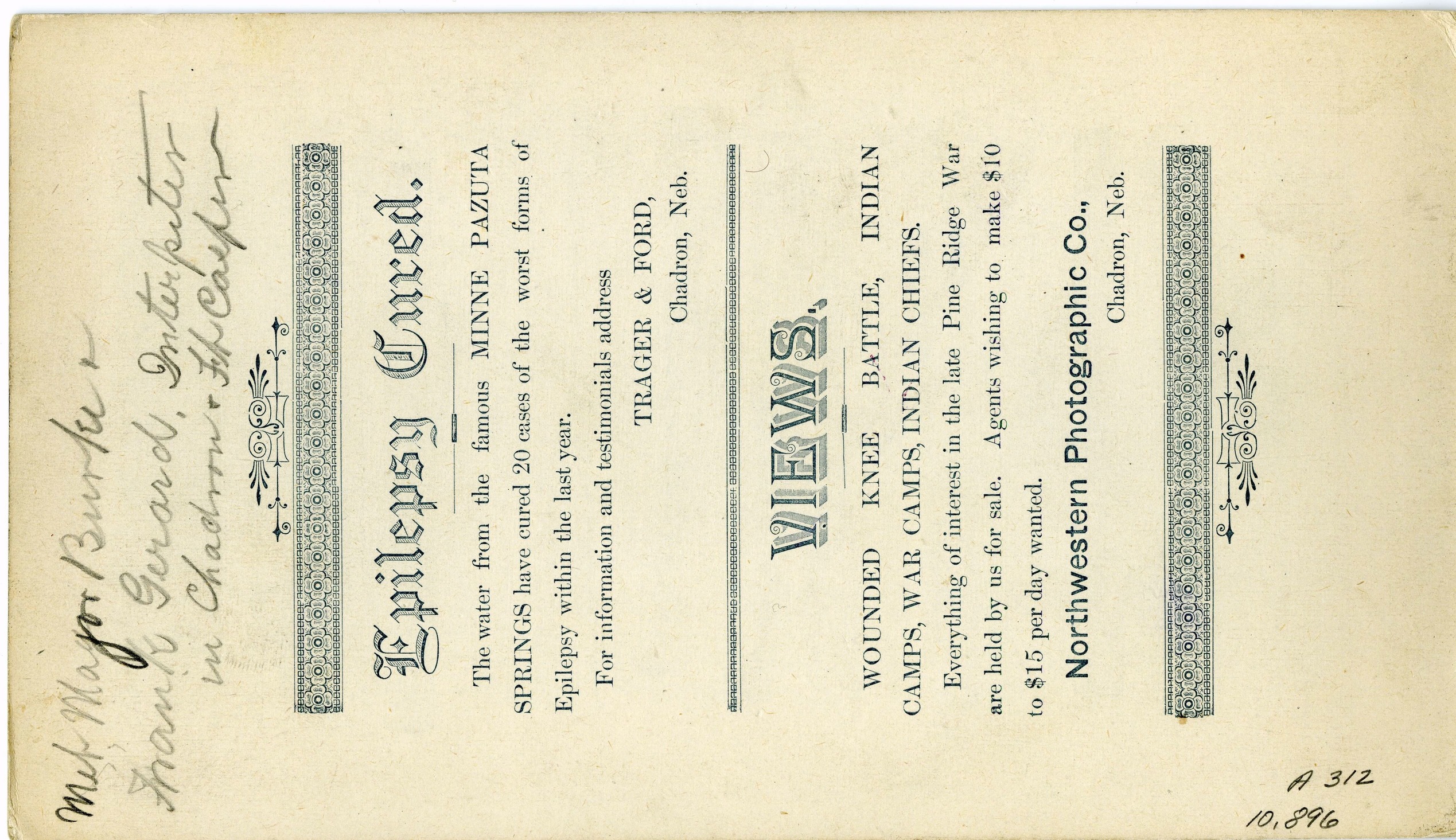 LIBI_00312_10896; A cabinet card photo depicting ten men. Four are on horseback, the other six stand. Most are identified in white lettering with a roman numeral. Those pictured include (left to right): J. M. McDonough (on foot), Good lance (mounted), Big Talk (mounted), Frank Gerard (on foot), Kicking Bear (mounted), Two Strike (mounted), Maj. Burke (on foot) and Short Bull (on foot). White lettering reading: “No 67” appears in the right third of the image. A handwritten note on the verso reads: Met Major Burke + Frank Gerard, Interpreter in Chadron + Ft. Casper”. This image was taken by an unknown photographer on an unknown date. It is the original image. ; cabinet card photo;Courtesy of the National Park Service, Little Bighorn Battlefield National Monument, LIBI_00312_10896, Unknown Photographer, "Group of Men, Some Mounted Others on Foot Wearing Coats or Wrapped in Blankets," date unknown.