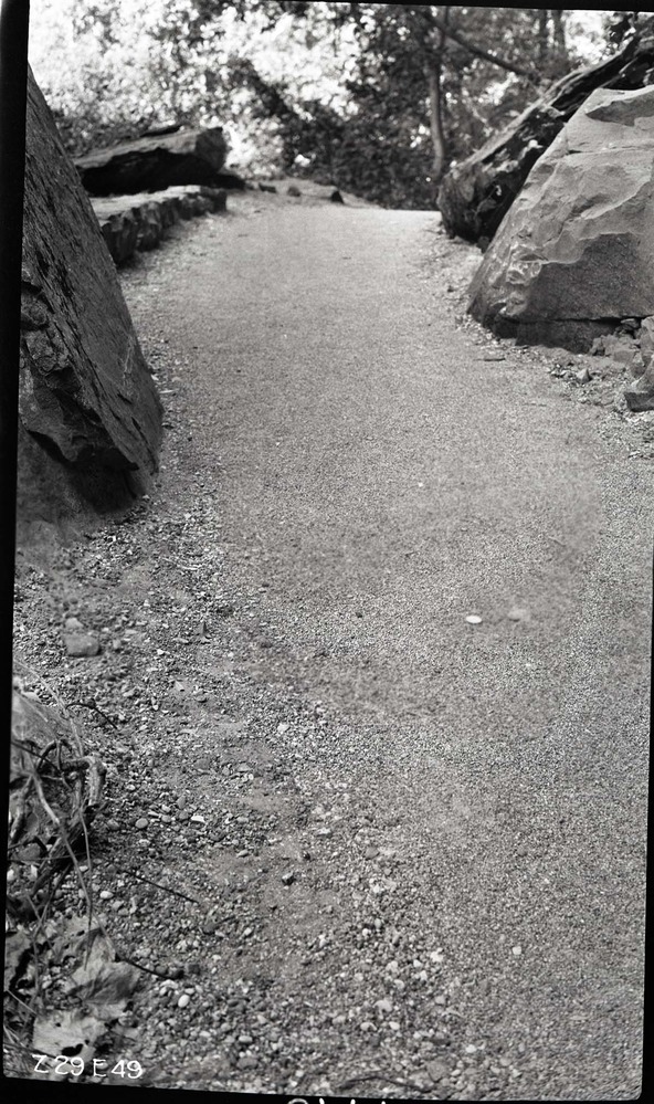 Narrows Trail construction- base course rolled, ready for the locking course. ; ZION Museum and Archives Image 008_03_025 ; ZION 13603