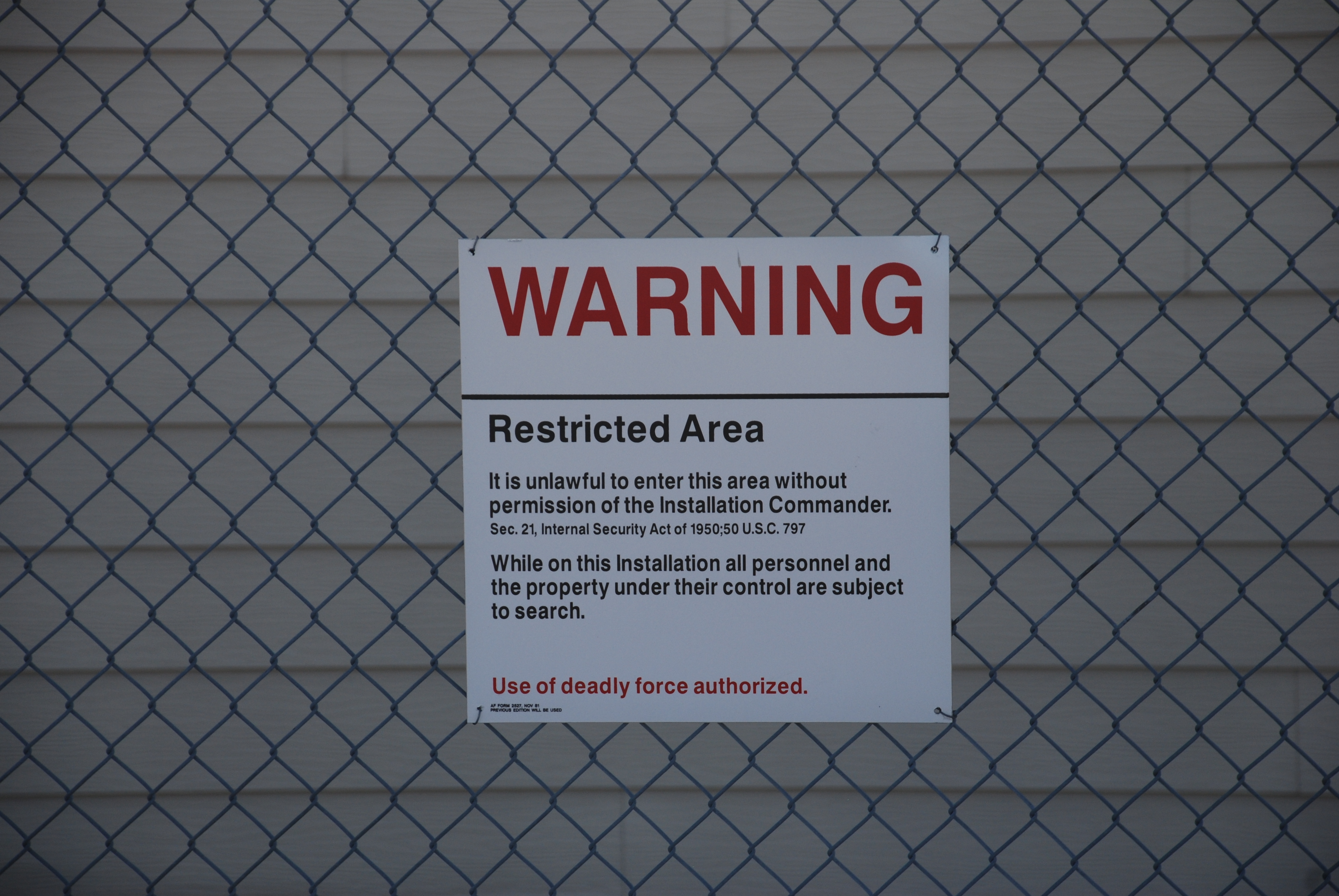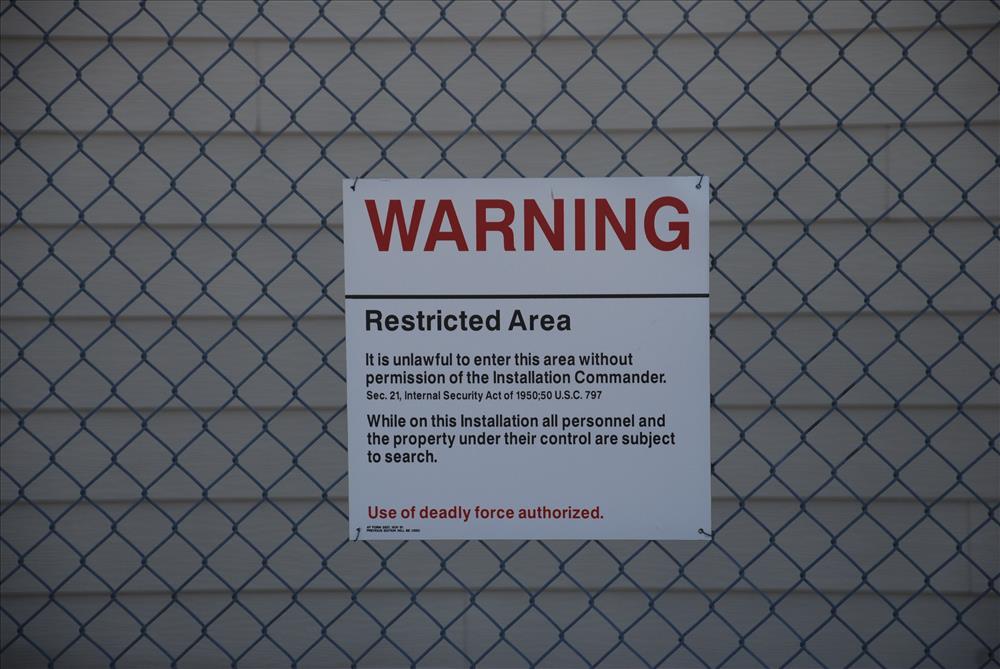 These warning signs are part of the historic fabric at Minuteman Missile NHS. These are part of the Launch Control Facility, Delta-01, the staffed location controlling 10 Minuteman II ICBMs from 1962-1993. These represent the restricted access common to these sites since they are a military installation.