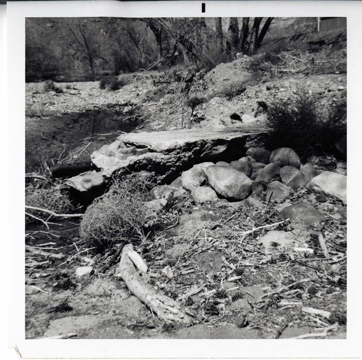 Drain pipe along a river/drainage. ; ZION Museum and Archives Image 006.04.14-5of5 ; ZION 15933