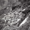 BW photo of rock slide near Echo Rock - 2.5" x 2.5".