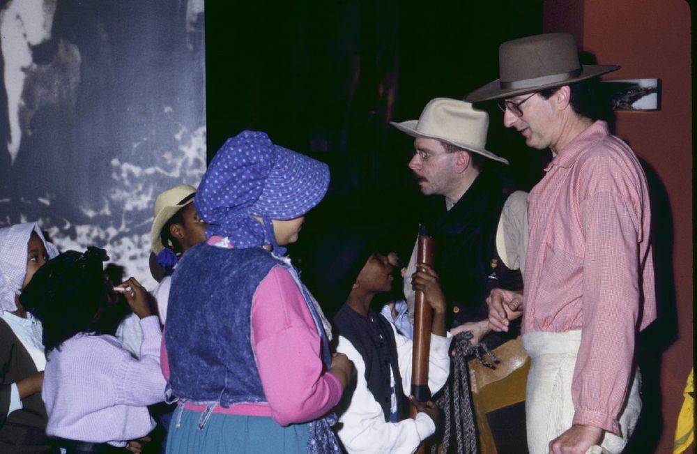 Don Uhler and Richard Horrell giving programs to school children. ; 1992