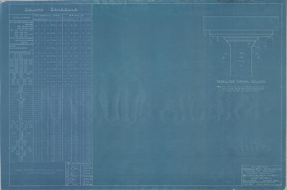 056 Brick Church Viaduct--Detail of columns and column schedule--East Orange, NJ [1922.05] Sheet no. 54