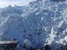 The surging movement of the glacier results in pulverized ice, seen here on the south edge of the Muldrow, below the confluence with the Brooks Glacier.