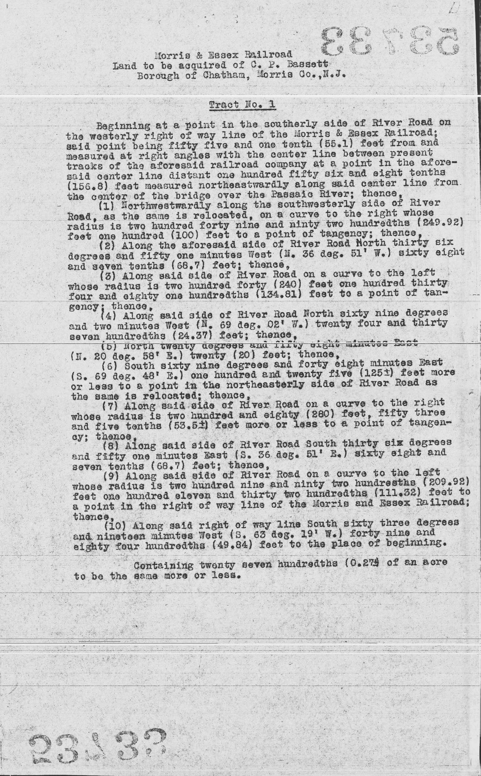 003 Tract 1 Description of tracts leased to C.D. Bassett--Chatham, NJ