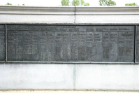 126' high overall, memorial consists of giant Doric column on temple-form pedestal on large balustraded platform reached by 4 flights of steps. Platform has bronzes of infantryman & cavalryman; 6' bronze of eagle mascot atop column.