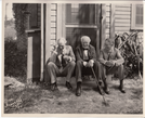 Harvey Firestone, Henry Ford, and Thomas Edison sitting on the stoop of the Fort Myers lab.