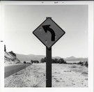Left Turn Ahead' sign in Kolob Canyon. ; ZION Museum and Archives Image 007.01.01-71of73 ; ZION 15933