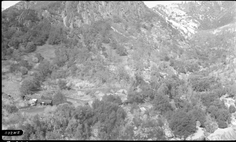 Unknown Photographer, 320000, Hospital Rock, construction, showing location of bridge No. 2, Generals Highway relocation, Foothill woodland plant community, Generals Highway, right panel of a two panel panorama