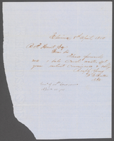 On front of document: “Elmira 8th April 1853 R.P. Hunt Esq Dear Sir Please forward me 1 bale Card waste at your earliest convenience & oblige Respy Yours W E Rutter R.P.W" [In different hand] "Sent of 154 [lbs?] [illegible] April 15/53" On back of document: "W E Rutter Order for 1 Bale Card waste Aptil 8 1853"