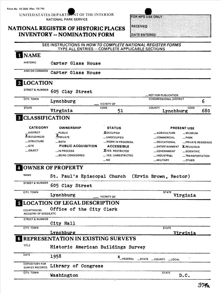 Lynchburg (Independent City) ; 605 Clay St.