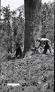 Civilian Conservation Corps (CCC) worker holding large saw near ponderosa downed for insect control on West Rim. ; ZION Museum and Archives Image 105_03_007 ; ZION 13460