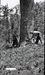 Two Civilian Conservation Corps (CCC) workers on West Rim Trail peeling and burning bark on downed ponderosa to control bark beetle infestation. ; ZION Museum and Archives Image 105_03_005 ; ZION 13458